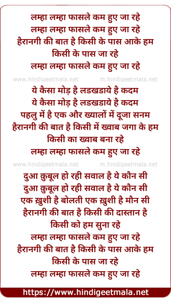 Lyrics of Lamha Lamha Faasle - लम्हा लम्हा फासले