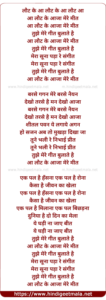 Lyrics of Laut Ke Aaja - लौट के आजा