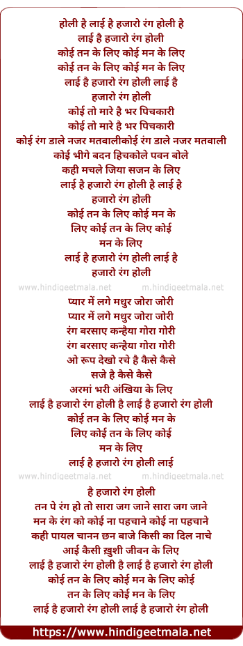 Lyrics of Layi Hai Hazaro Rang Holi - लाई है हजारो रंग होली
