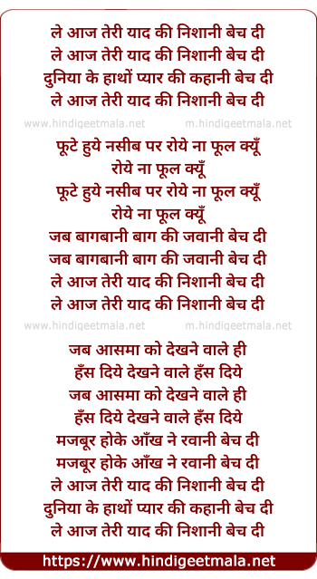 Lyrics of Le Aaj Teri Yaad Ki Nishani Bech Di - ले आज तेरी याद की निशानी बेच दी