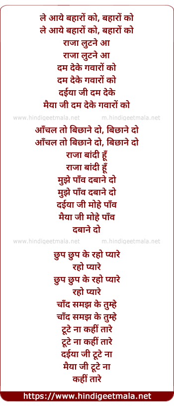Lyrics of Le Aaye Baharo Ko - ले आये बहारों को, बहारों को