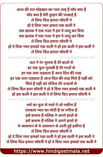 le liya dil hamara chandani ne ho de diya pyar hamko ek kali ne