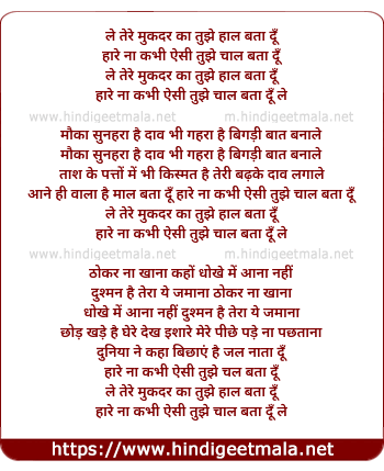Lyrics of Le Tere Muqaddar Ka Tujhe Haal Bata Du - ले तेरे मुकदर का तुझे हाल बता दूँ