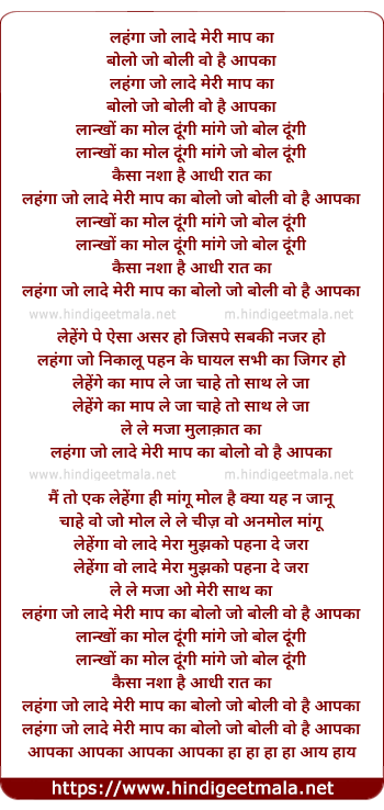 Lyrics of Lehanga Jo Laade Meri Maap Ka - लहंगा जो लादे मेरी माप का