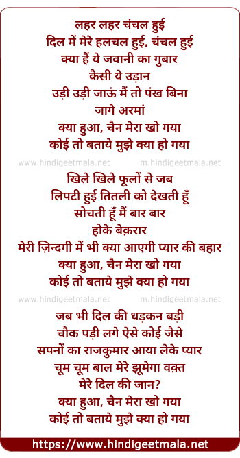 Lyrics of Lehar Lehar Chanchal Huyi - लहर लहर चंचल हुई