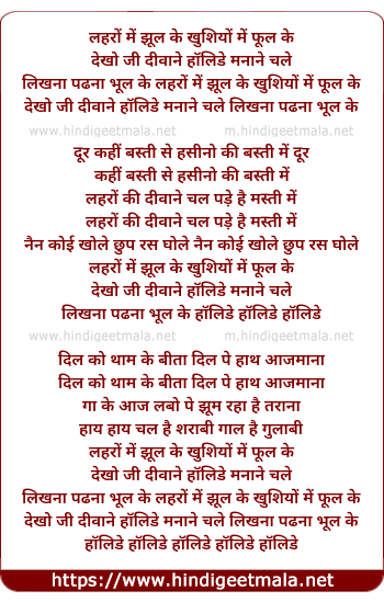 Lyrics of Lehron Me Jhool Ke, Khushiyo Me Phool Ke, Dekho Ji - लहरों में झूल के, खुशियों में फूल के,देखो जी