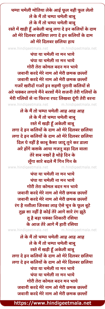 Lyrics of Leke Mai To Champa Chameli Babu - लेके मैं तो चम्पा चमेली बाबू