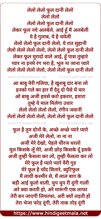Lyrics of Lelo Lelo Phuldani Lelo - लेलो लेलो फूल दानी लेलो