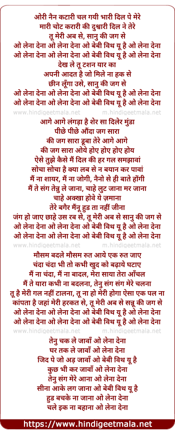 Poetic Translation - Lyrics of Lena Dena - लेना देना