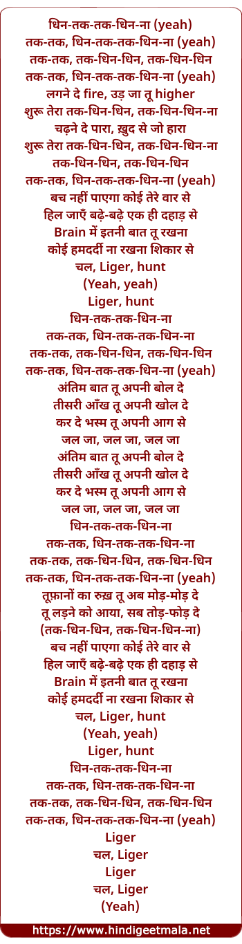 Lyrics of Liger Hunt - लाइगर हंट