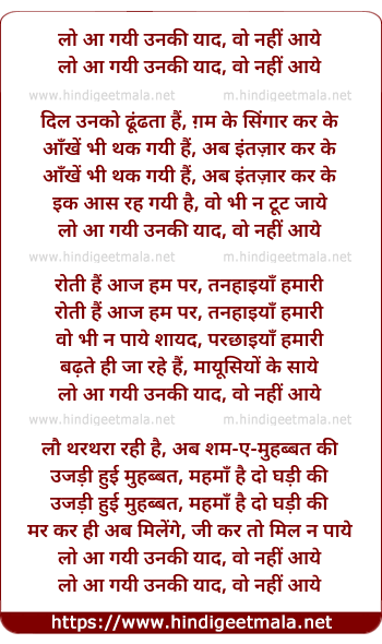 Lyrics of Lo Aa Gayi Unki Yaad - लो आ गयी उनकी याद