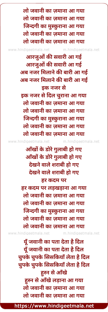 Lyrics of Lo Jawani Ka Zamana Aa Gaya - लो जवानी का ज़माना आ गया