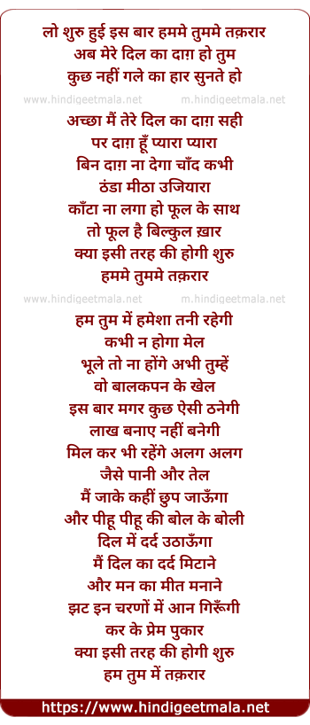 Lyrics of Lo Shuru Huyee Iss Bar, Ham Me Tum Me Takarar - लो शुरु हुई इस बार हममे तुममे तक़रार