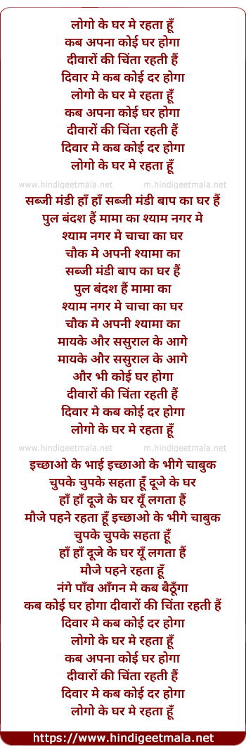 Lyrics of Logon Ke Ghar Me Rehta Hu - लोगो के घर मे रहता हूँ