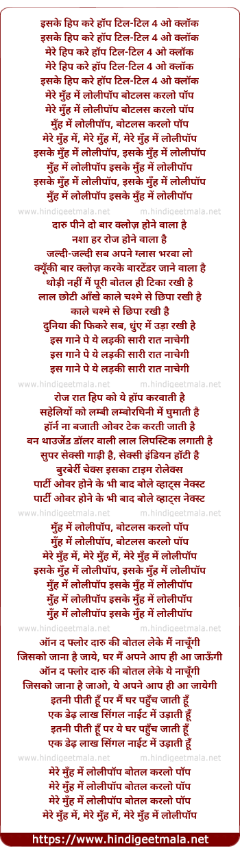 Lyrics of Lollipop - इसके हिप करे हॉप टिल-टिल 4 ओ क्लॉक