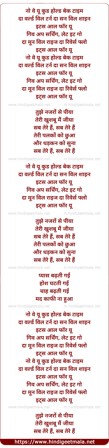 Lyrics of Longing - नो वे यू कुड होल्ड बेक टाइम