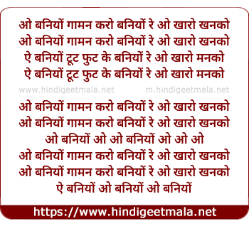 o baniyo gaman karo baniyo re o kharo khanko