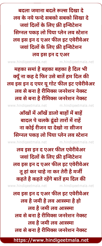 Poetic Translation - Lyrics of Love Is In The Air - बदला जमाना बदले रूल्स दिखा दे