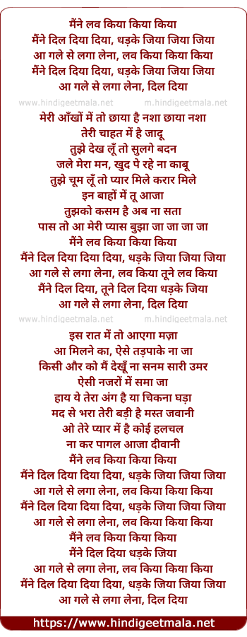 Lyrics of Love Kiya - मैंने लव किया किया किया