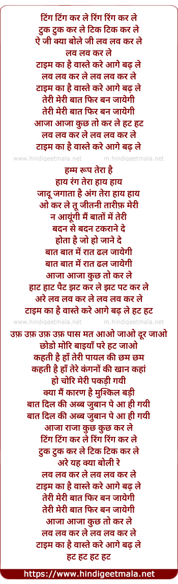 Lyrics of Love Love Kar Le (Part-2) - लव लव कर ले