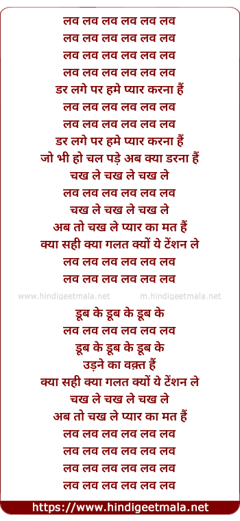 Lyrics of Love Love Love, Ab To Chakh Le - लव लव लव, अब तो चख ले