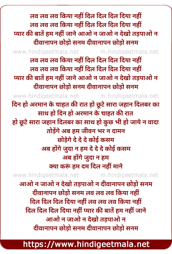 Lyrics of Love Love Love Kiya Nahi - लव लव लव किया नहीं