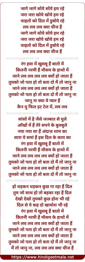 Lyrics of Love Love Love Kya Cheez Hai - लव लव लव क्या चीज हैं