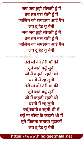 Lyrics of Love To Hate You - लव टू हेट यू