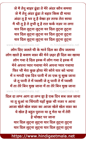 yar dil luttna luttna yr dil tuttna tuttna