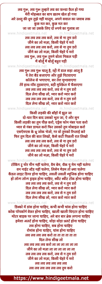 Lyrics of Luv Luv Luv Luv Karo, Luv Se Na Tum Daro - लव लव लव लव करो, लव से ना तुम डरो