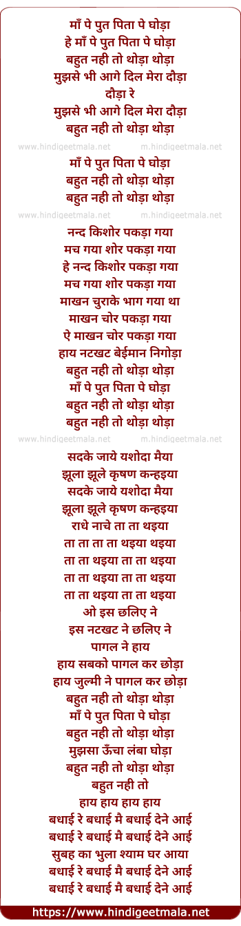 Lyrics of Ma Pe Put Pita Pe Ghoda - माँ पे पुत पिता पे घोड़ा