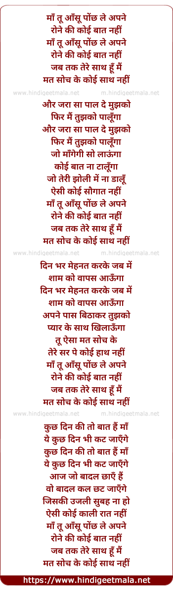 Lyrics of Ma Tu Aasun Poch Le - माँ तू आँसू पोंछ ले
