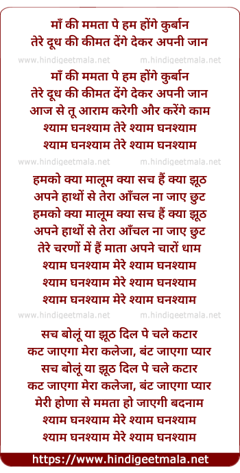 Lyrics of Ma Ki Mamta Pe Hum Honge Kurban - माँ की ममता पे हम होंगे कुर्बान