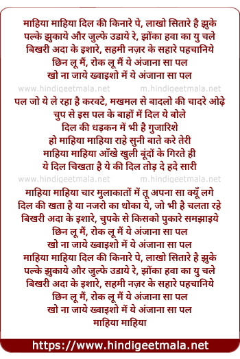 Lyrics of Maahiya Maahiya Dil Ki Kinaarein Pe - माहिया माहिया दिल की किनारे पे