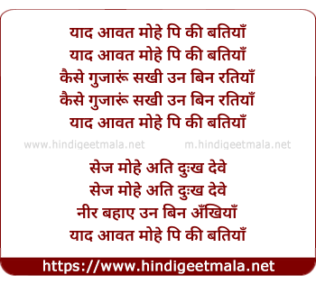 yaad aavat mohe pi ki batiyaan