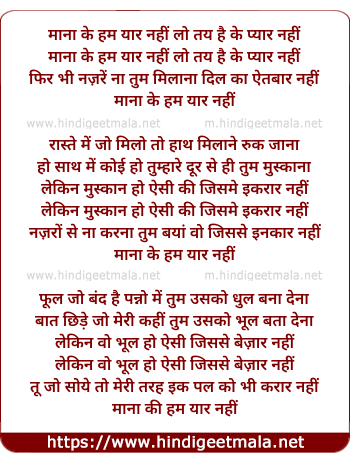 Lyrics of Maana Ke Hum Yaar Nahin (Female) - माना की हम यार नहीं(फिमेल)