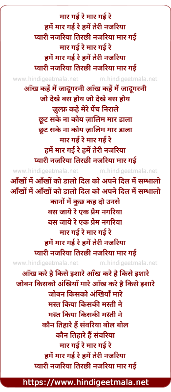 Lyrics of Maar Gayi Re Hame Teri Najariya - मार गई रे हमें तेरी नजरिया