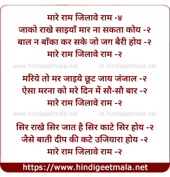 Lyrics of Maare Raam Jilaave Raam - मारे राम जिलावे राम