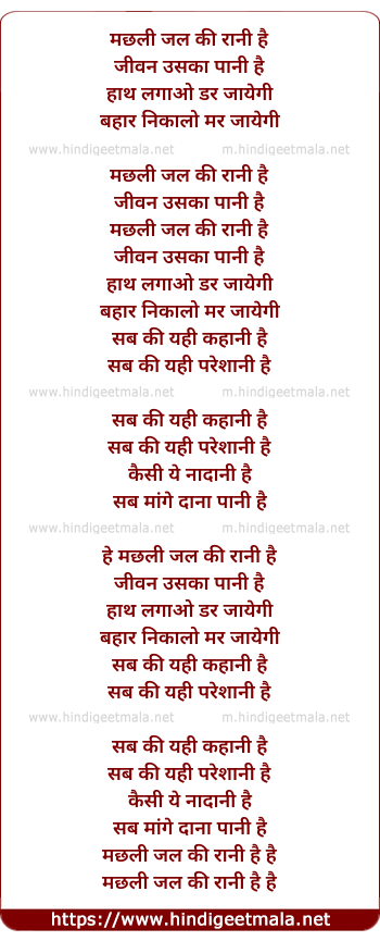 Lyrics of Machchli Jal Ki Rani Hai - मछली जल की रानी है