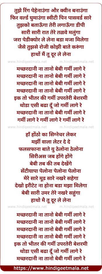 Lyrics of Machhardani Na Tano Baby Garmi Lage Re - मछरदानी ना तानो बेबी गर्मी लगे रे