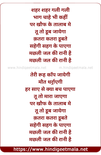 Lyrics of Machhli Jal Ki Raani Hai - मछली जल की रानी है