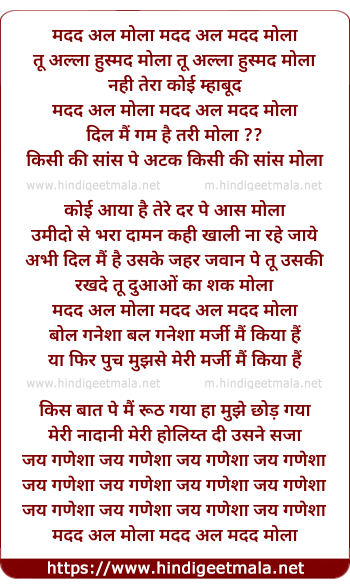 Lyrics of Madad Al Madad - मदद आल मदद