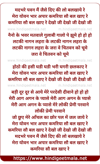 Lyrics of Madbhare Pavan Mein Jaise Diye Ki