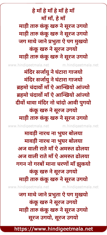 Lyrics of Madee Taru Kanku Kharyu - हे माँ हे माँ हे माँ हे माँ