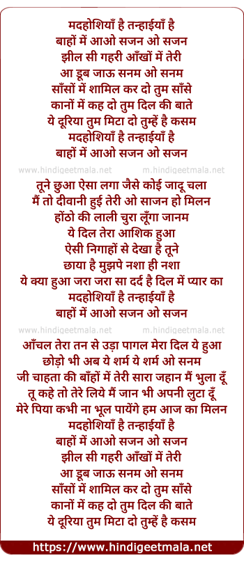 Lyrics of Madhoshiya Hai Tanhaiya Hai - मदहोशियाँ है तन्हाईयाँ है