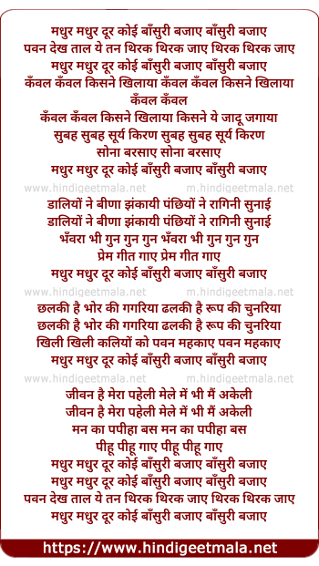Lyrics of Madhur Madhur Dur Koyee Baasuree Bajaaye - मधुर मधुर दूर कोई बाँसुरी बजाए