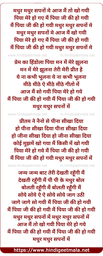 Lyrics of Madhur Sapno Me Aaj Main To Kho Gayi