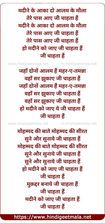 Lyrics of Madine Ko Jaye Ye Jee Chahta Hai - मदीने के आका दो आलम के मौला