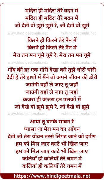 Lyrics of Madira Hi Madira Tere Badan Me - मदिरा ही मदिरा तेरे बदन में