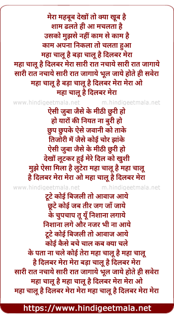 hai dilbar mera mera o maha chalu hai dilbar mera